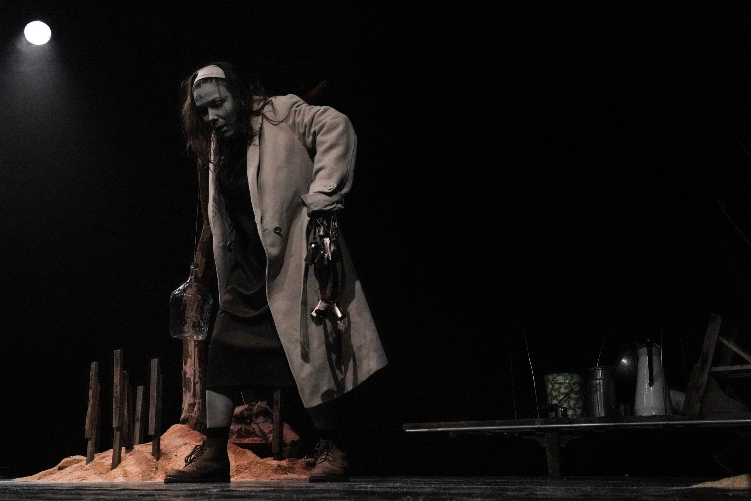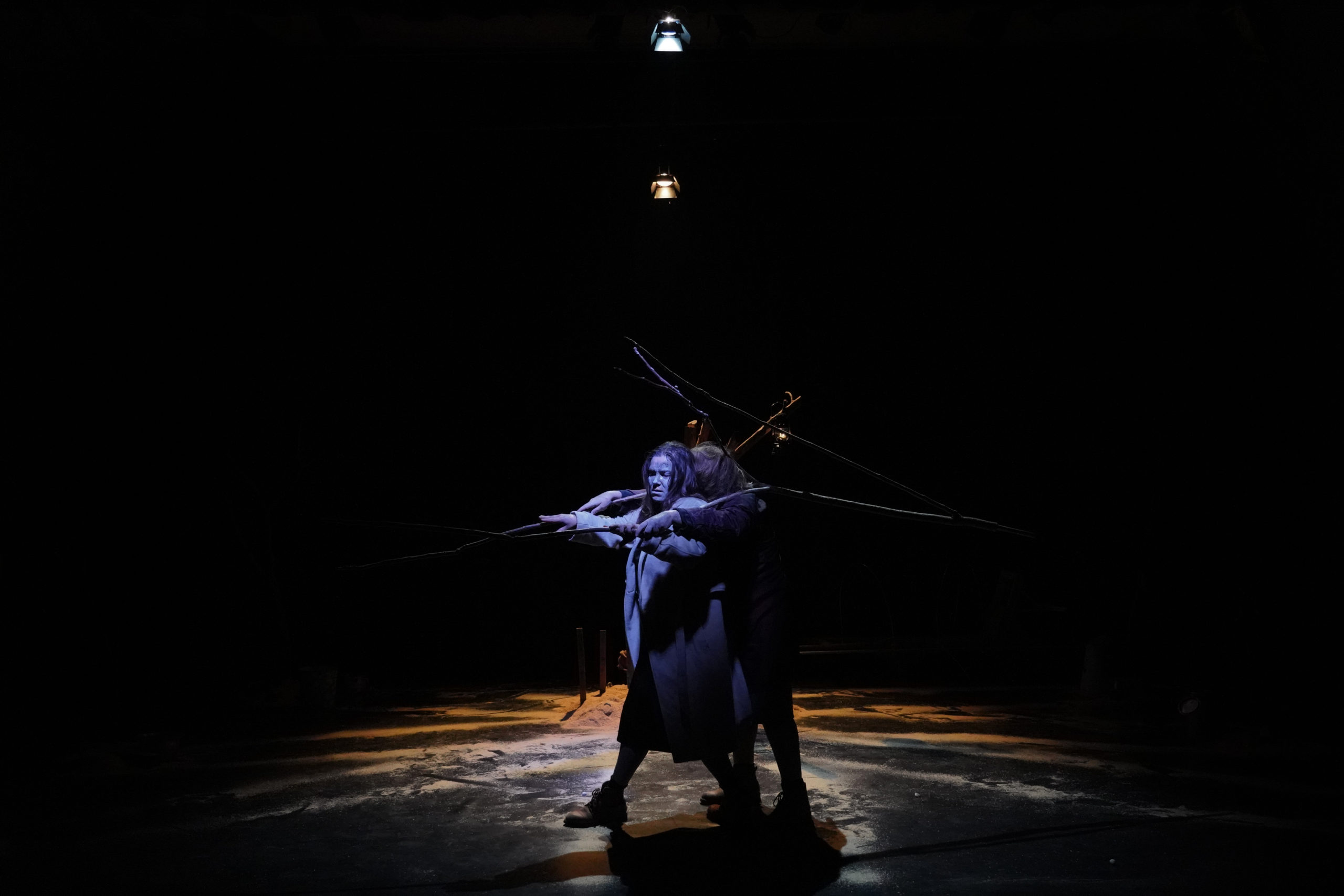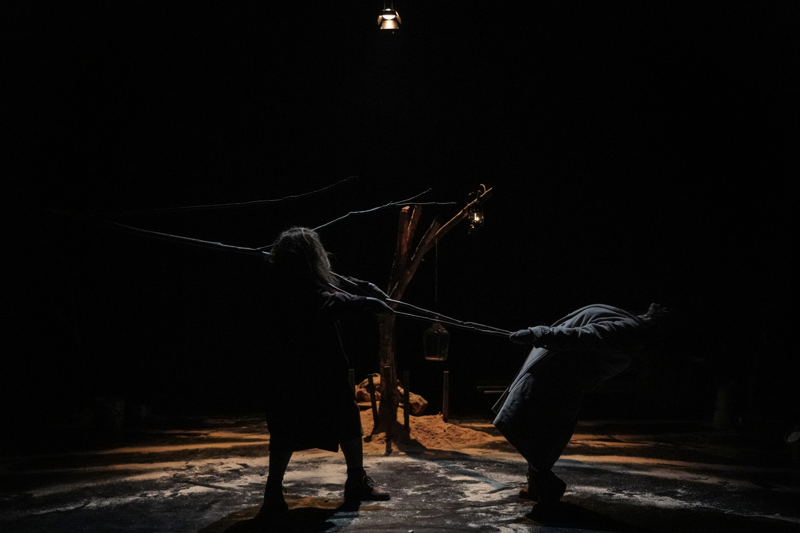 É esse mundo fingido, sonhado, que criámos. Uma fábula feita dessas sensações. Num espaço rasgado por vestígios de árvores e sombras do que já foi, duas mulheres chegam para fazerem desse espaço o seu lugar terra. Árvores mortas, a terra seca, infértil, é aqui que o desafio para encontrar água começa.