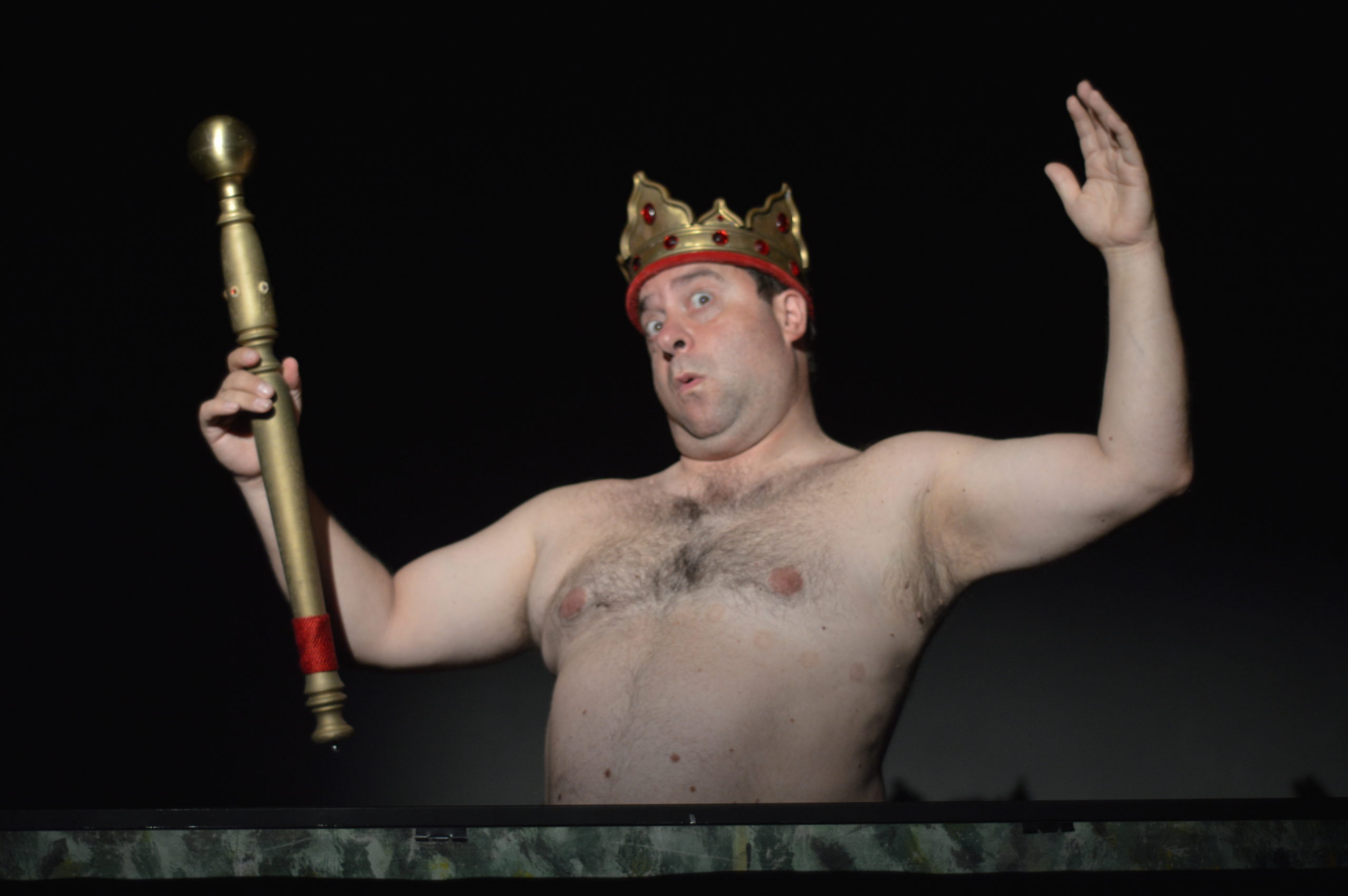 Ao fazermos a dramaturgia do texto, não deixámos de sublinhar este último aspecto (“O Rei vai nu”, diz a criança, e todo o jogo de aparências começa a desabar…), mas inflectimos a leitura tradicional, colocámo-nos noutra perspectiva e, do meio da feira de vaidades, despenalizamos os falsos tecelões. A necessidade aguça o engenho, e os falsos tecelões, com fome, apenas se aproveitam das aparências dominantes, da hipocrisia, e da abundância, mal distribuída, do sistema.