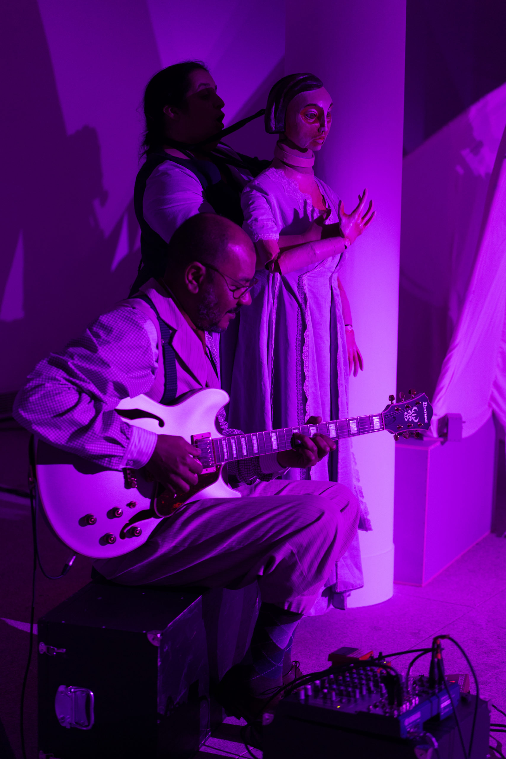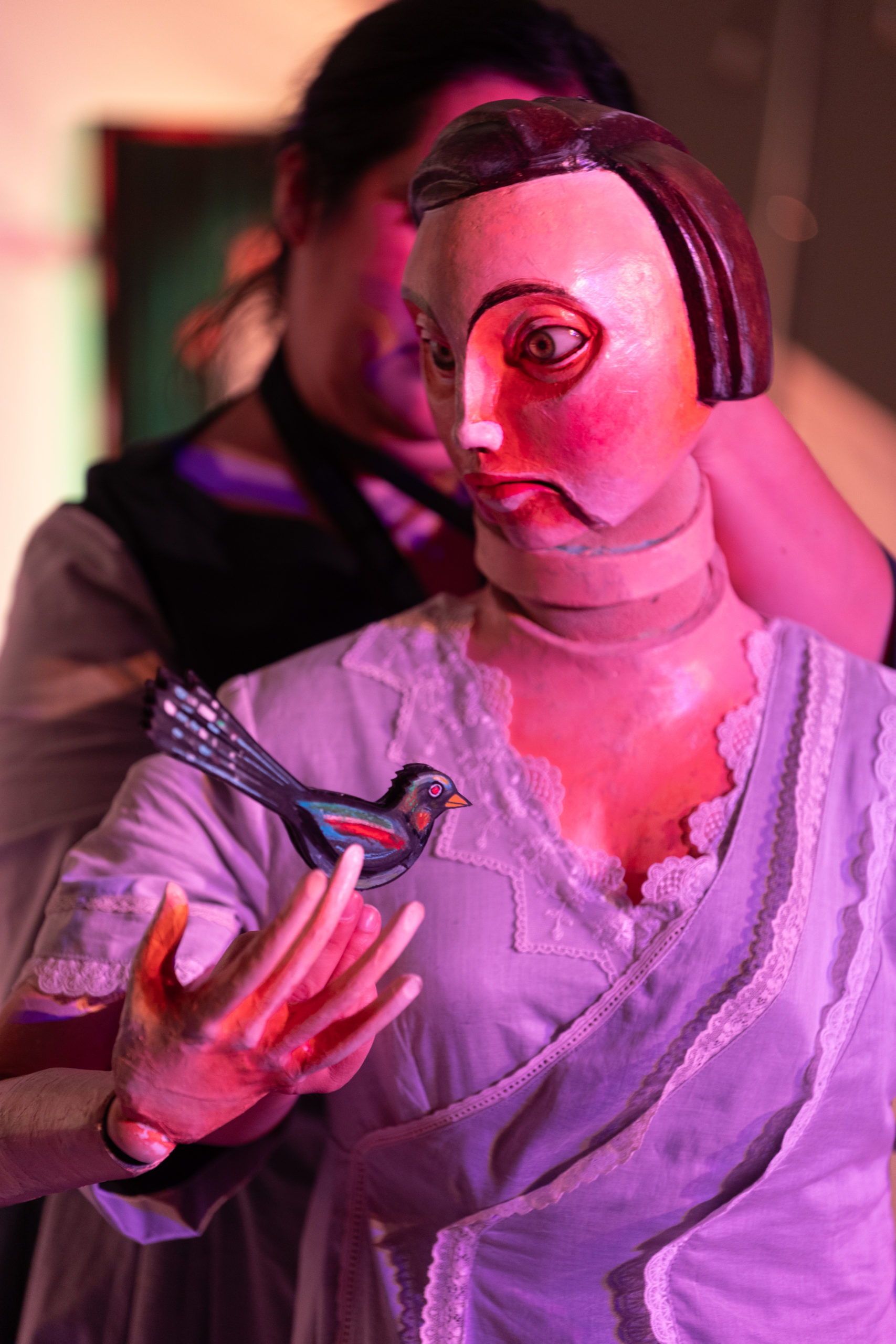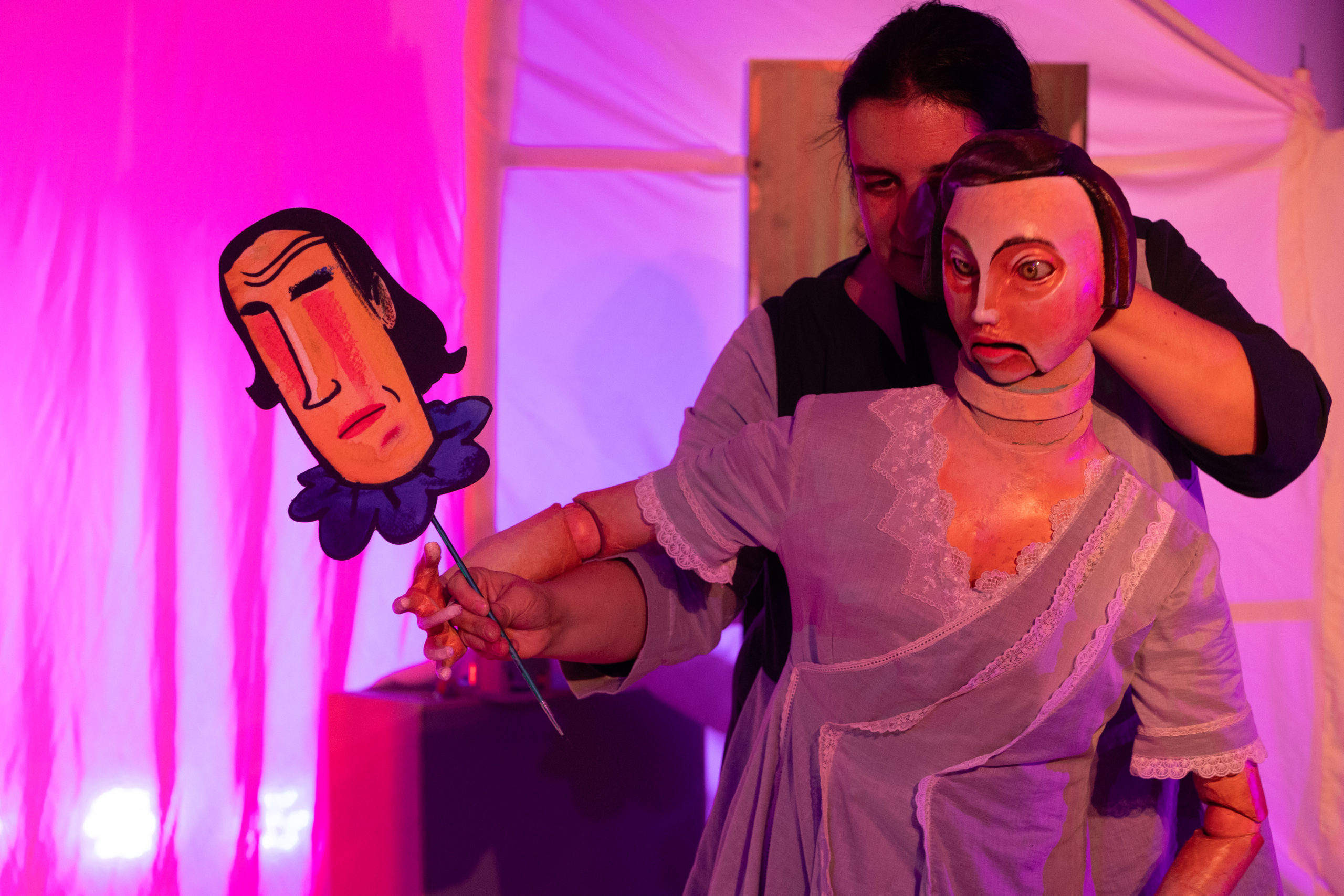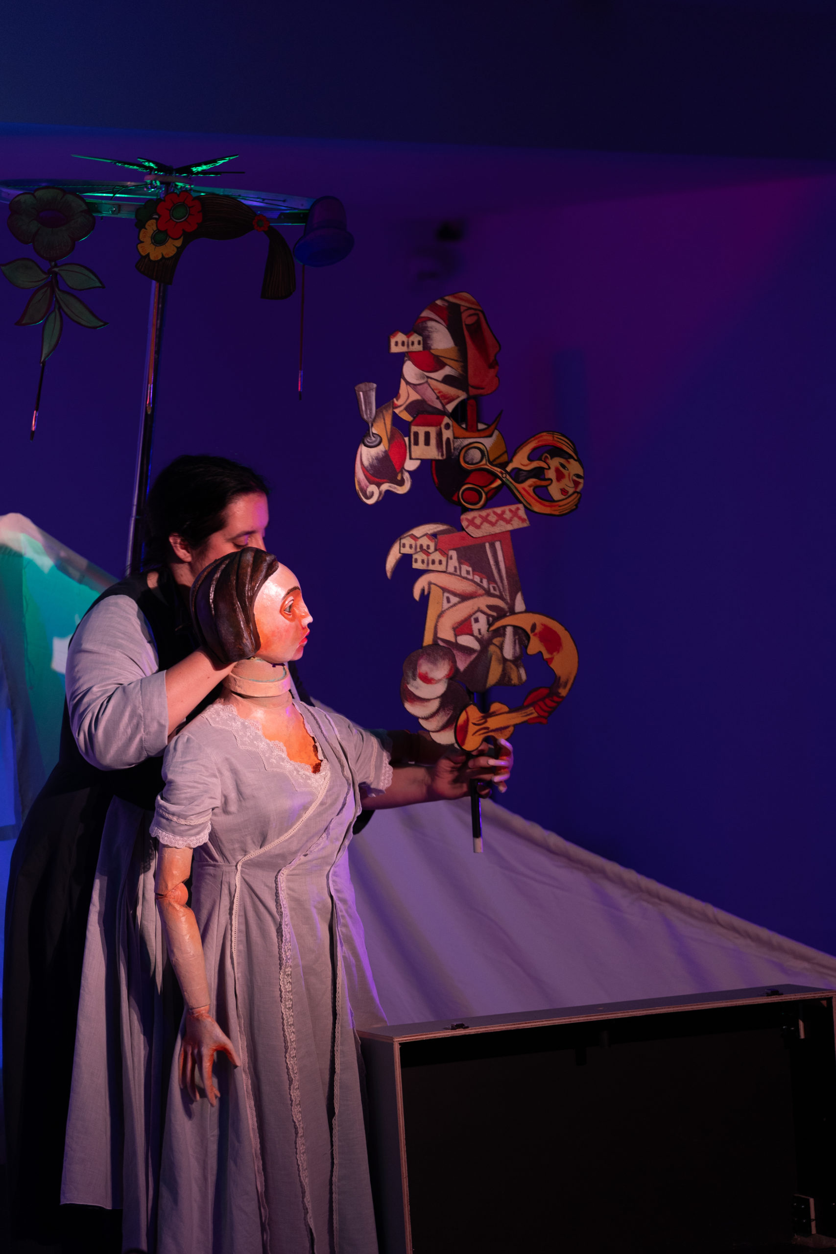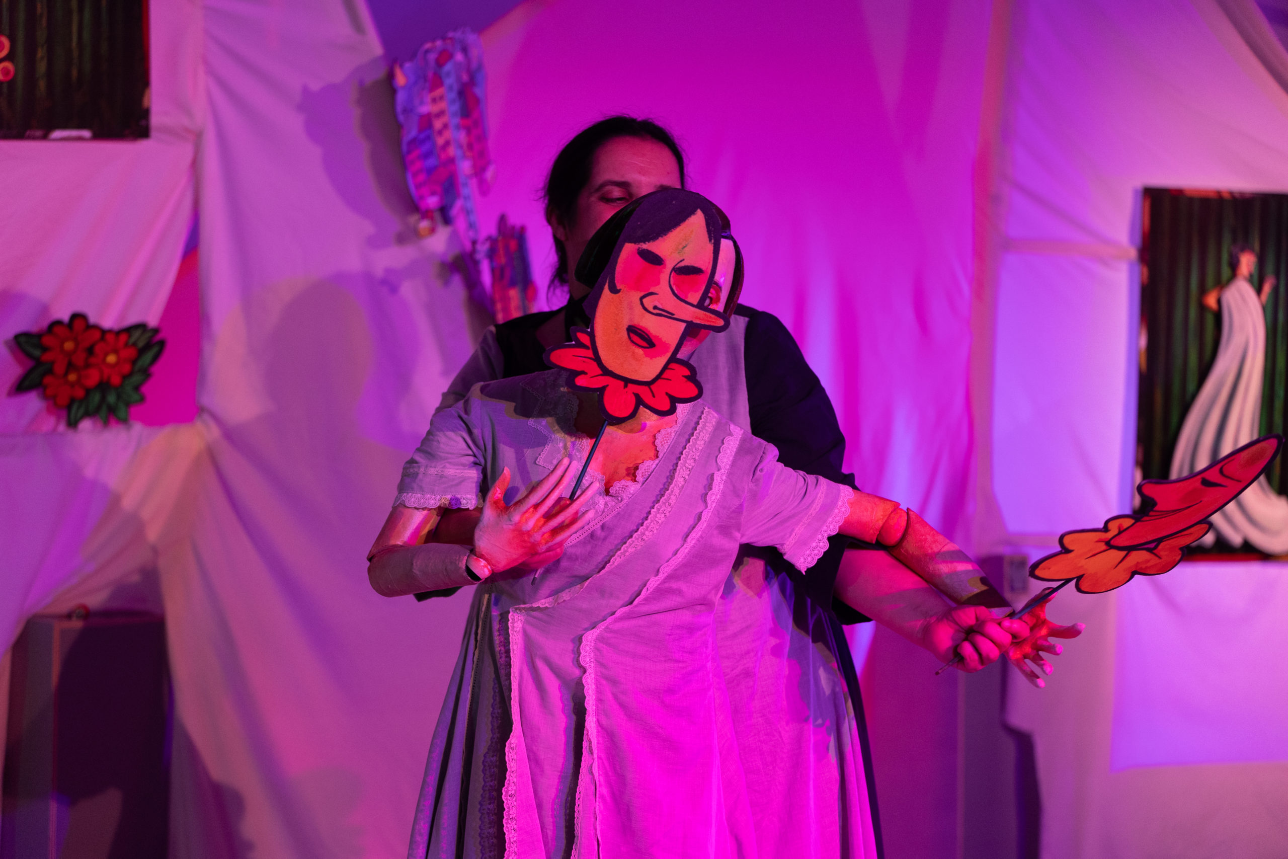 Based on Julio’s paintings, we traveled through what we call the emotional framework, a joint search to bring to the stage many of the emotions that each work, each color, each shape holds. And from a painting to a show, there are many perspectives from many other artists who bring to the stage what affects them in the author’s painting. Set design, costumes, puppets, illustrations, sound, music, light, shadows, are just some of the elements that are part of this new dimension which, in addition to introducing this artist, is in itself a living work resulting from many perspectives and many sensibilities.