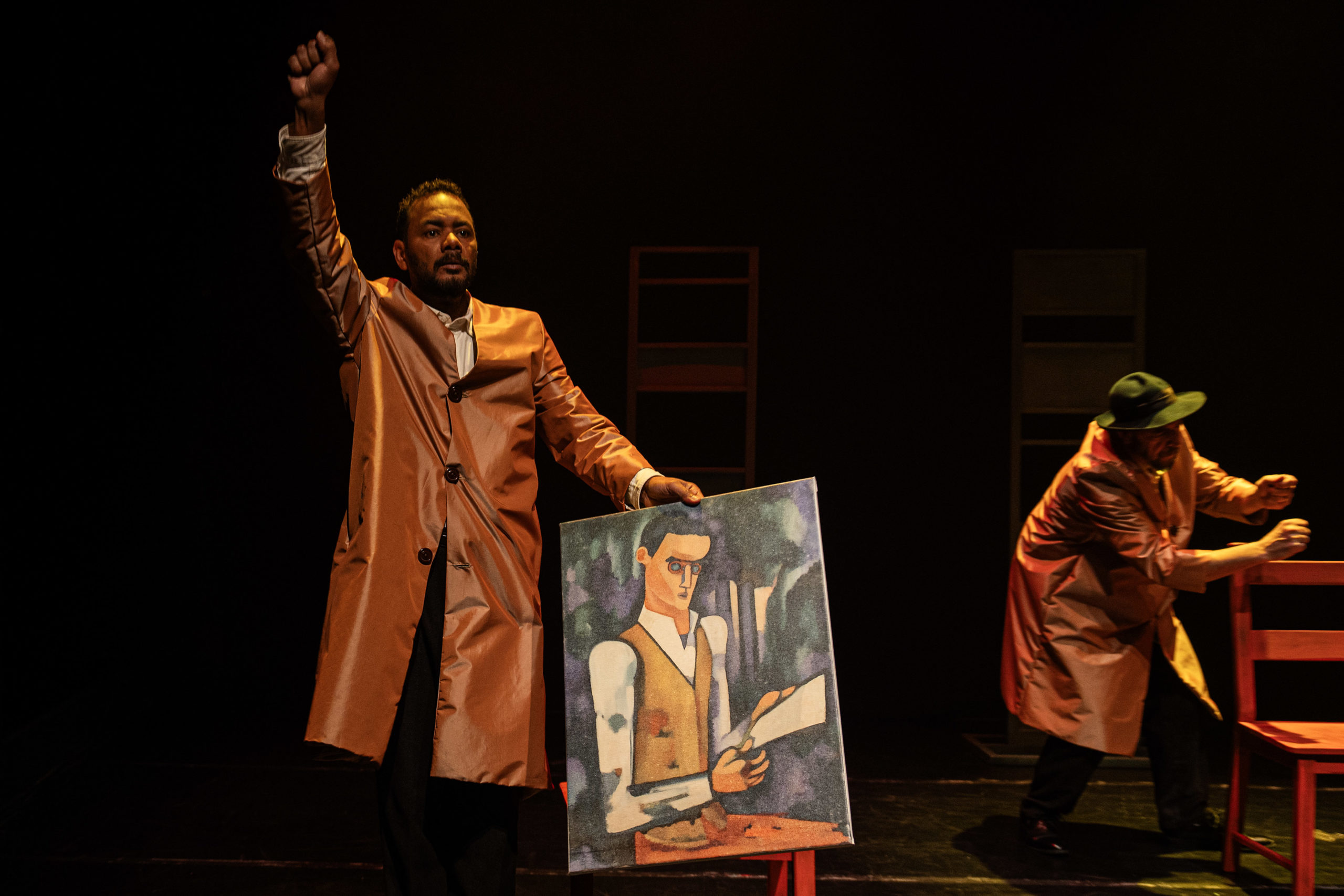 On stage, the audience witnesses an incursion into his iconic work—such as A Procissão (The Procession), O Parto da Viola (The Birth of the Viola), and A Menina dos Cravos (The Girl with Carnations)—which are intertwined with real and fictional episodes from his life and his relationships with other artists, including the “other Amadeos”: Modigliani and Mozart.