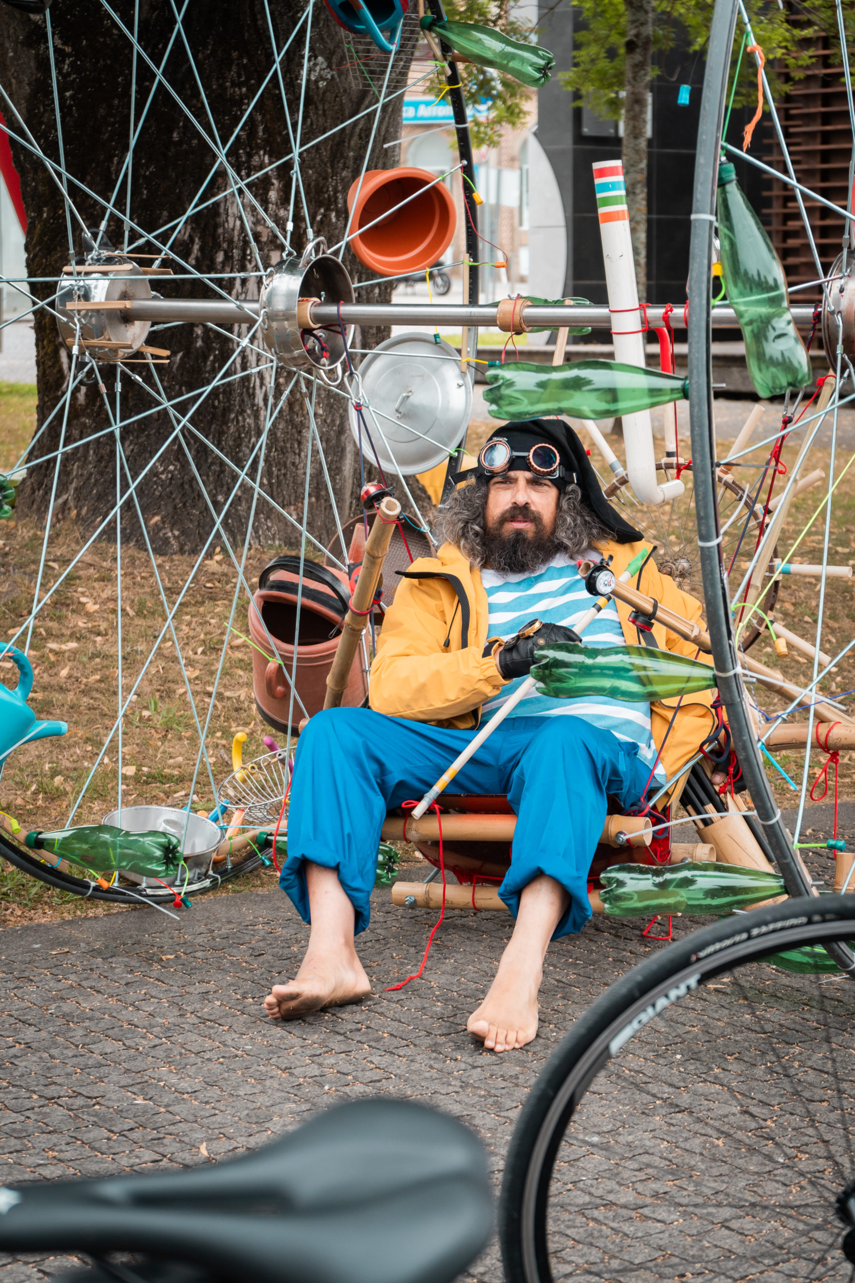 Xico Alcatruz is a creator of gadgets, who was once a dreamer boatman and, with the passing of time, became a worker in a traveling factory that creates “criadilhos,” a kind of object resulting from the unusual mixture of seemingly distinct “things.” Playful and constructive, he invents new forms of interaction, both between objects and between objects and people, generating moments of play and musical creativity.